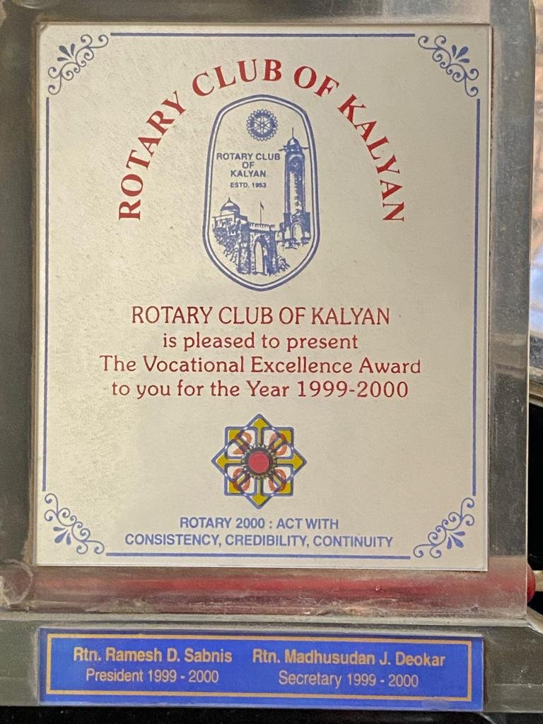 ५. रोटरी क्लब कल्याण तर्फे व्होकेशनल एक्सलंस पुरस्कार.