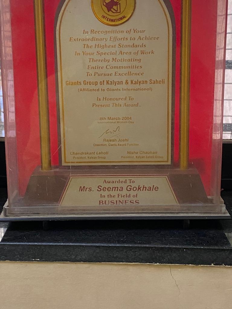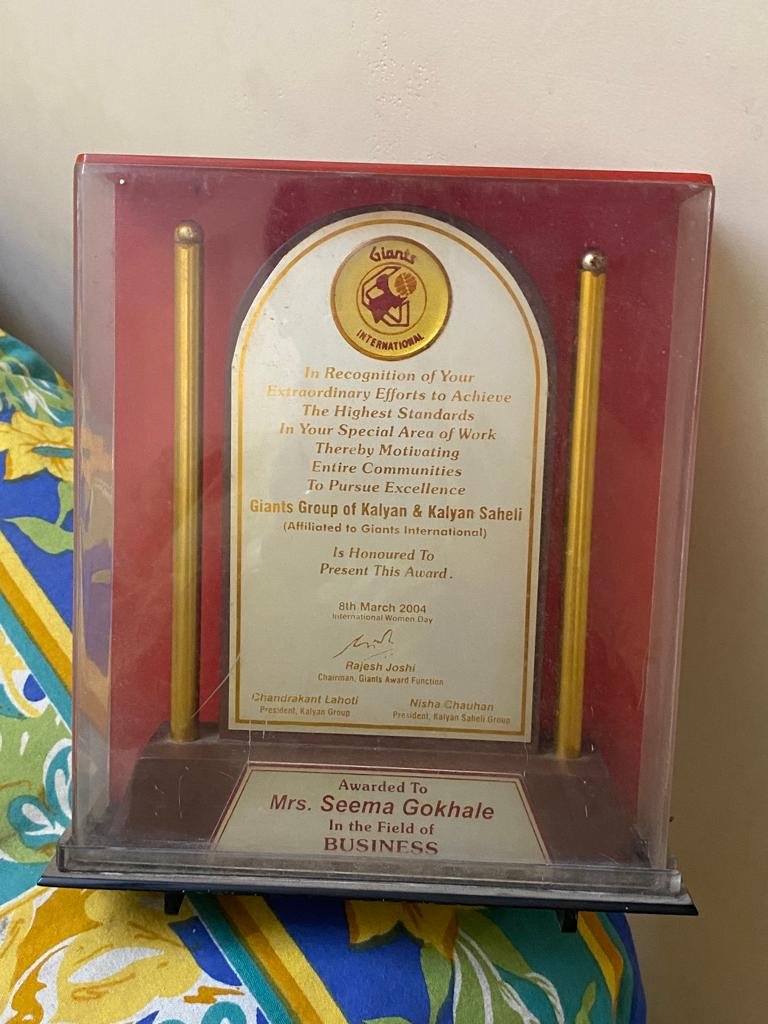 ४. जायंट ग्रुप सहेली कल्याण तर्फे बिझनेस वूमन पुरस्कार.